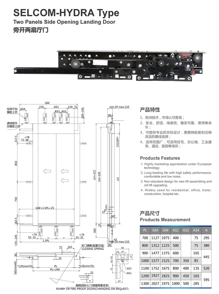 SELCOM-HYDRA Type Two Panels Side Opeing Landing Door