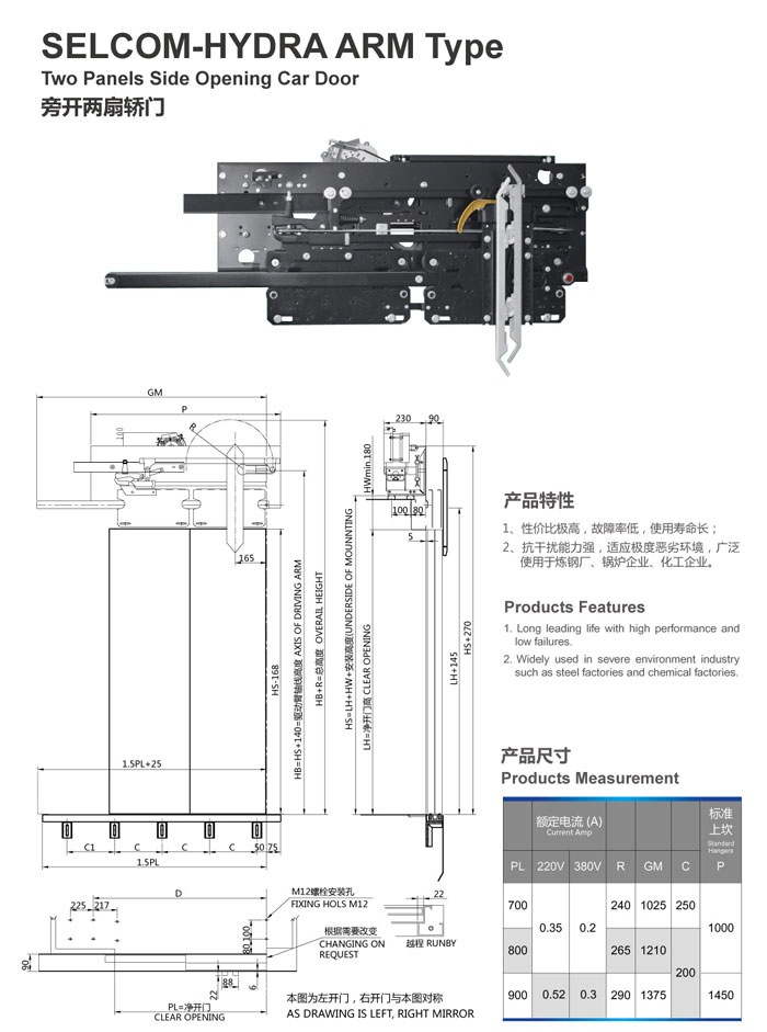 SELCM-HYDRA ARM Type Two Panels Side Opeing Car Door